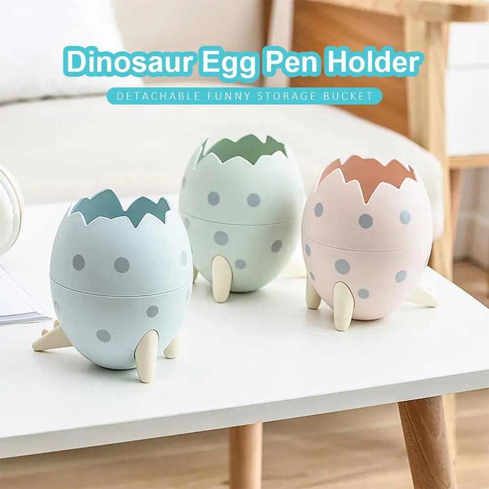 1PC Cute Round Dinosaur Egg Plastic Pen Holder Stand Office Desk Organizer Pencil Pot Container Stationery Storage Box Kids Gift