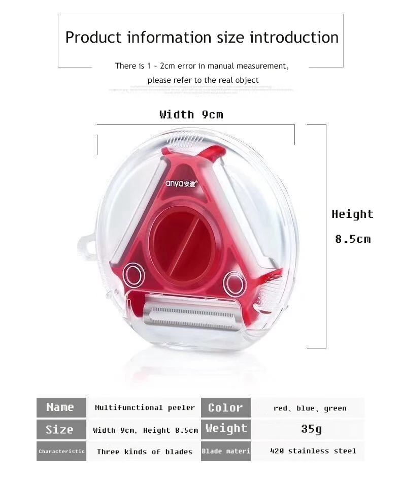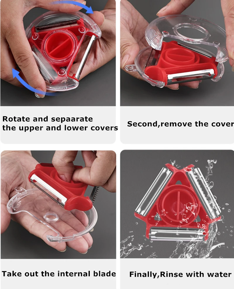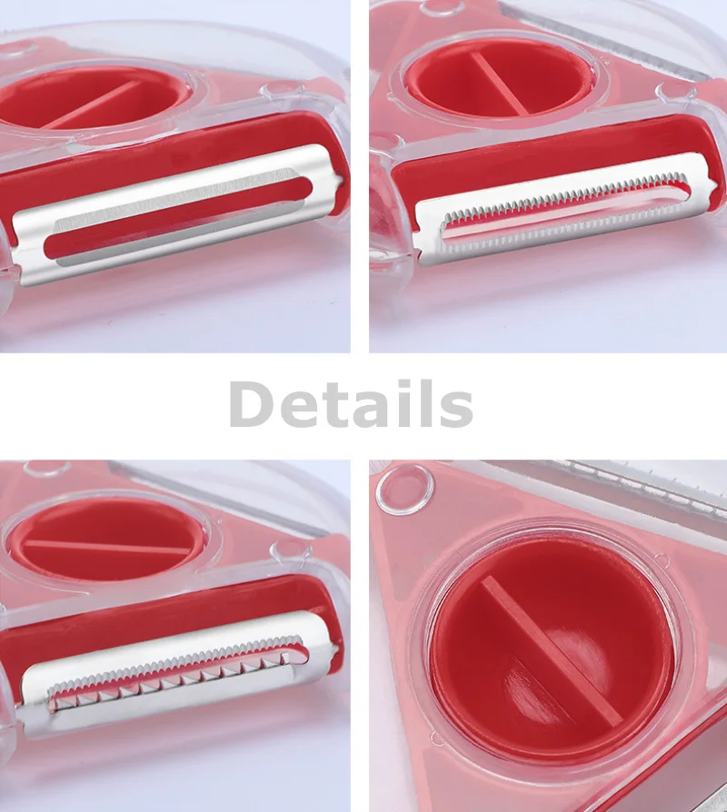 The peeler has 3 different blades, which are flat, serrated and shredded. Simply rotate the slicer to perform the required cutting, which can meet almost all your kitchen needs.