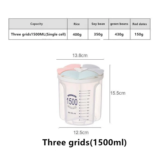 1500ml 3 grids: 12.5*15.5*13.8cm