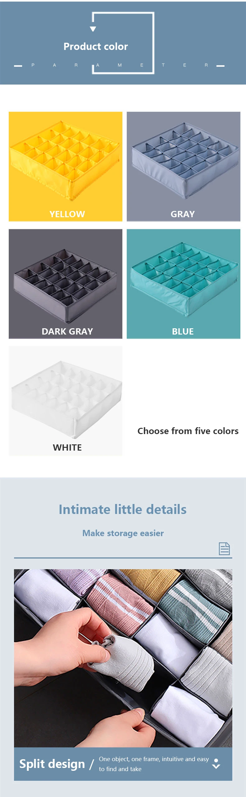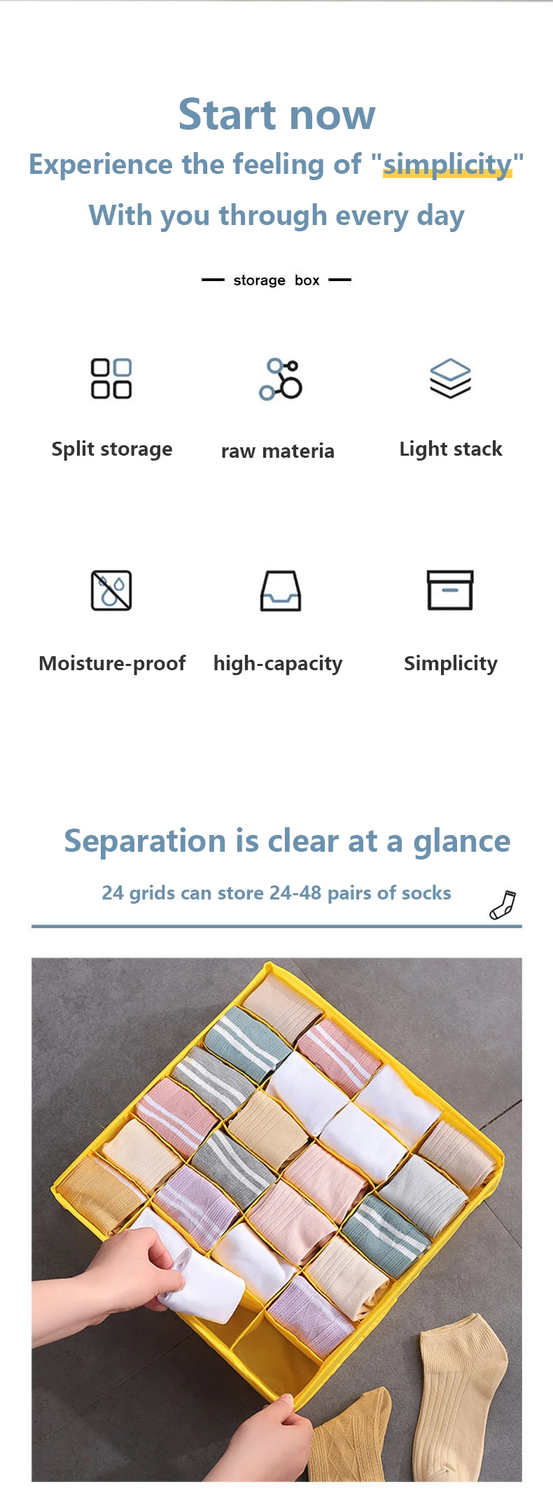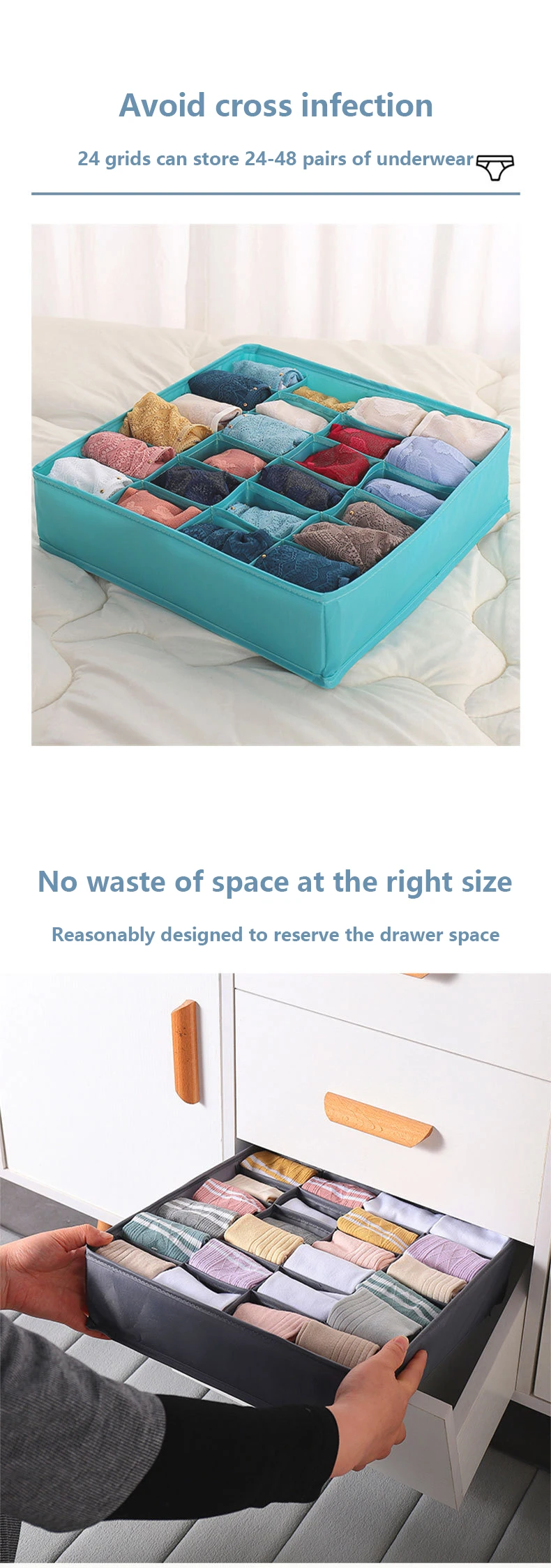 Dormitory Closet Organizer For Socks Home Separated Underwear Storage Box 24 Grids Bra Organizer Foldable Drawer Organizer