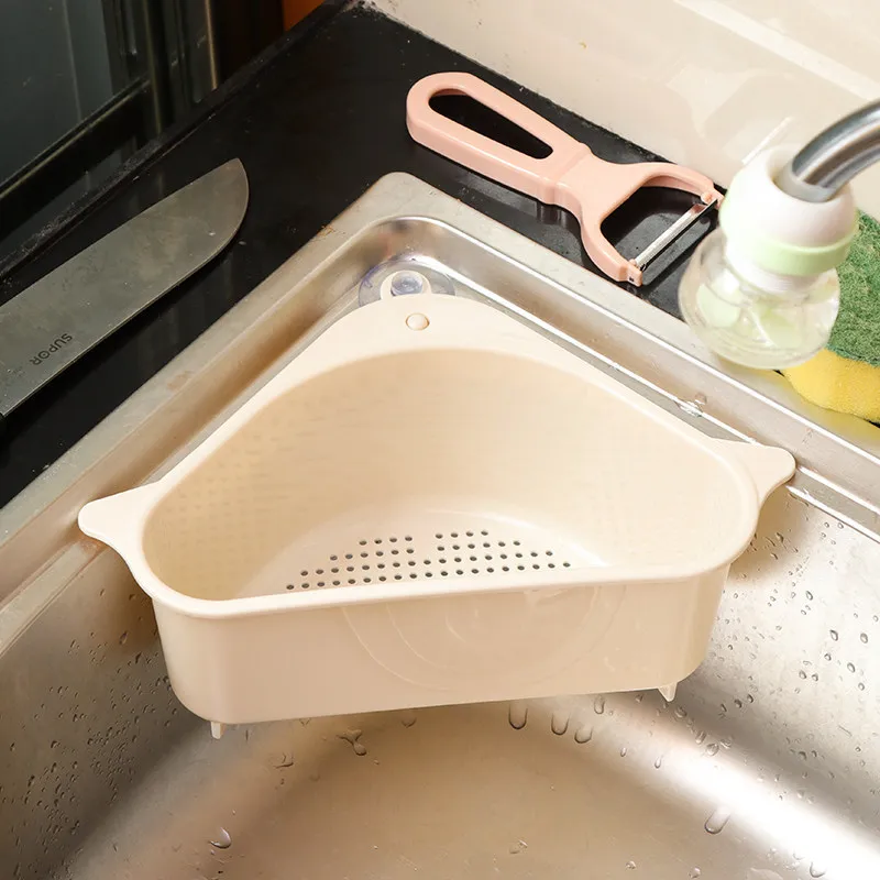 Triangular Sink Strainer Drain Vegetable Fruit Drainer Basket Suction Cup Sponge Holder Storage Rack Tool Sink Filter